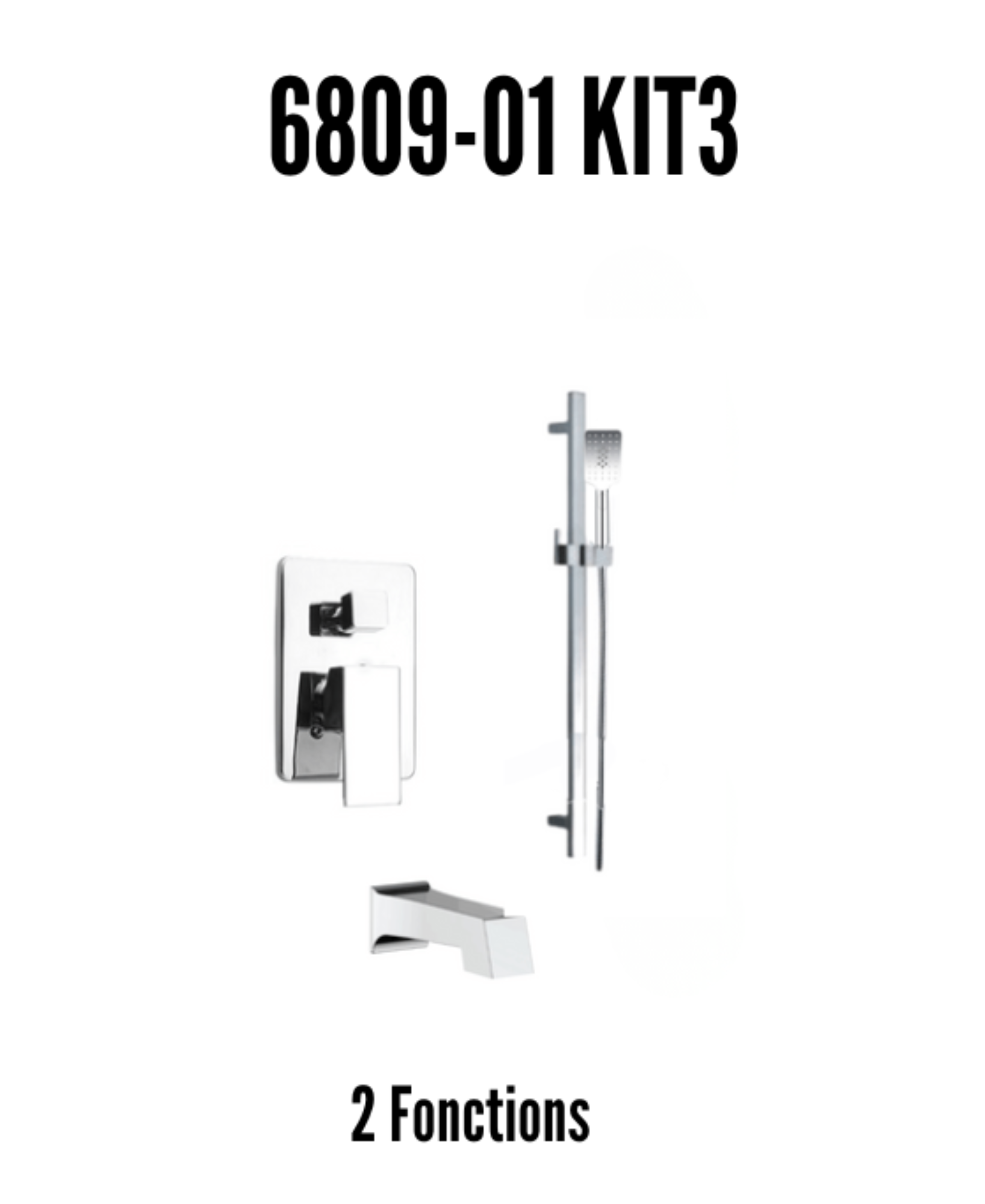 Upgrade your bathroom with our 2-function chrome shower kit that includes a bathtub spout and a convenient shower handle. This kit, featuring Valve 6809-01, R15, FS41, S2, I-07 and SP31-01, combines both style and functionality to provide an exceptional shower and bath experience. Enjoy the versatility of a revitalizing shower or a relaxing bath, all with an elegant touch. Transform your daily routine into a luxurious escape with this comprehensive shower kit.