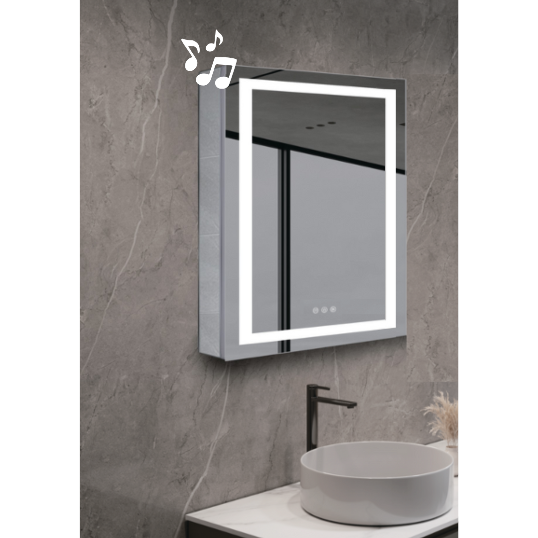 Upgrade your bathroom with this 36-inch LED pharmacy mirror, featuring built-in Bluetooth for music streaming and hands-free calls. The integrated side speakers deliver high-quality sound, while the magnifying mirror adds extra convenience. With three adjustable light settings (warm, neutral, cool) and anti-fog technology, this mirror combines practicality and style. Available in black or chrome finishes, it’s the perfect modern addition to any bathroom.