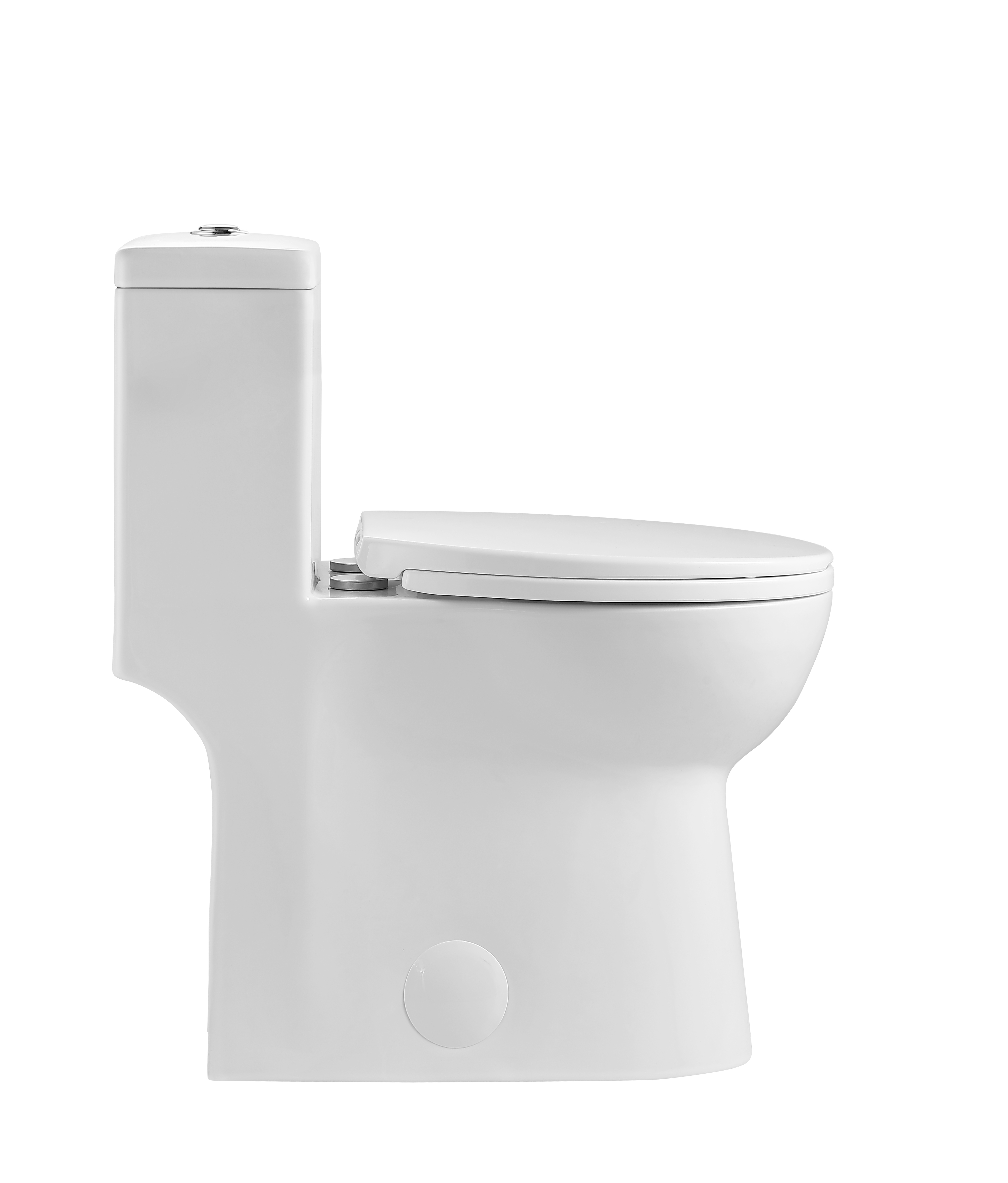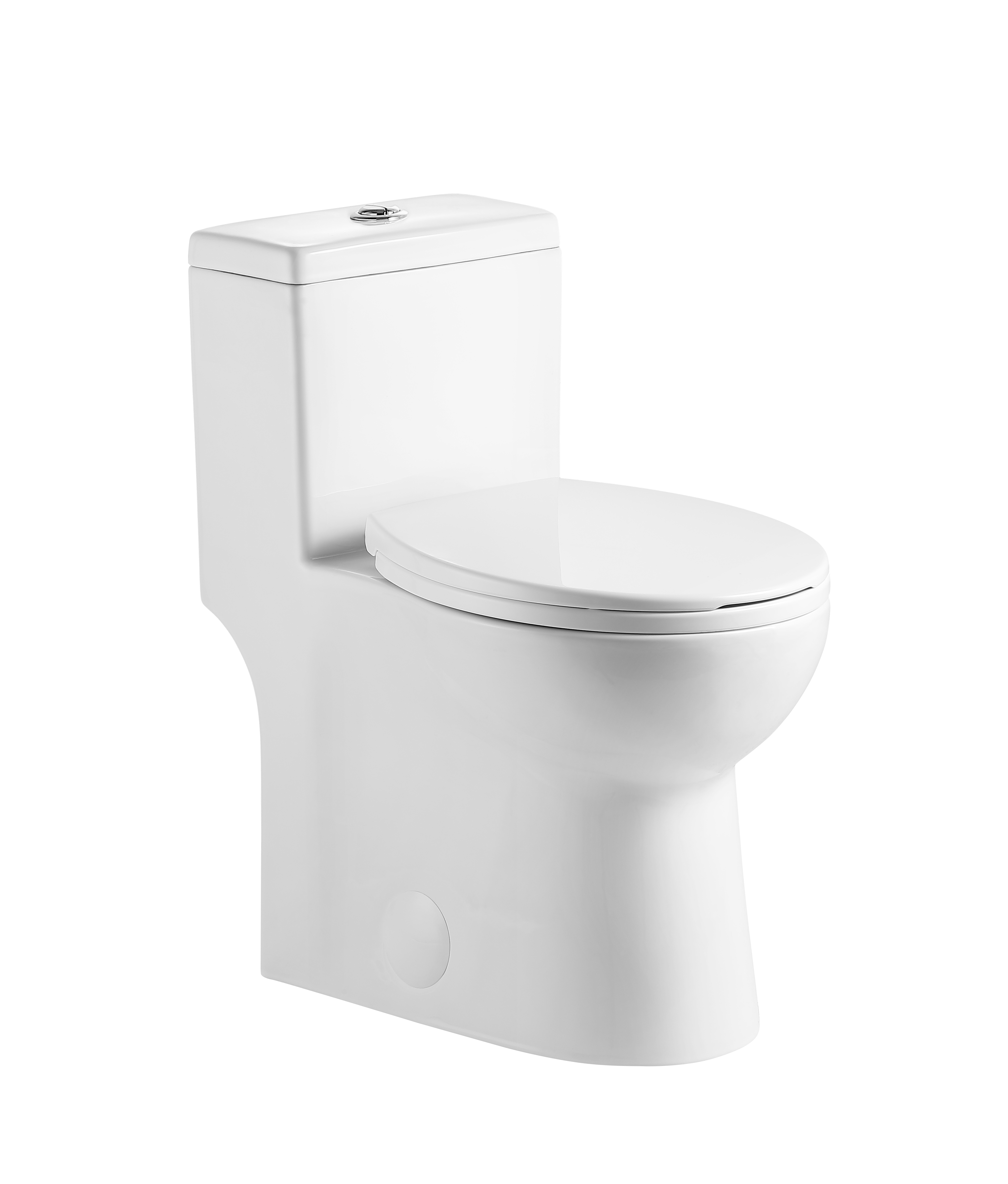 Small in its size, it is the perfect one size toilet for smaller bathrooms. This glossy polished white toilet is a one-piece toilet, linking effortlessly the bowl and the tank for an easy maintenance, cleaning and installation. It uses the new Siphonic Flushing Technology that cleans two times more efficiently compared to traditional toilets and it has a built-in High Power Flush yet low water consumption (saves water).