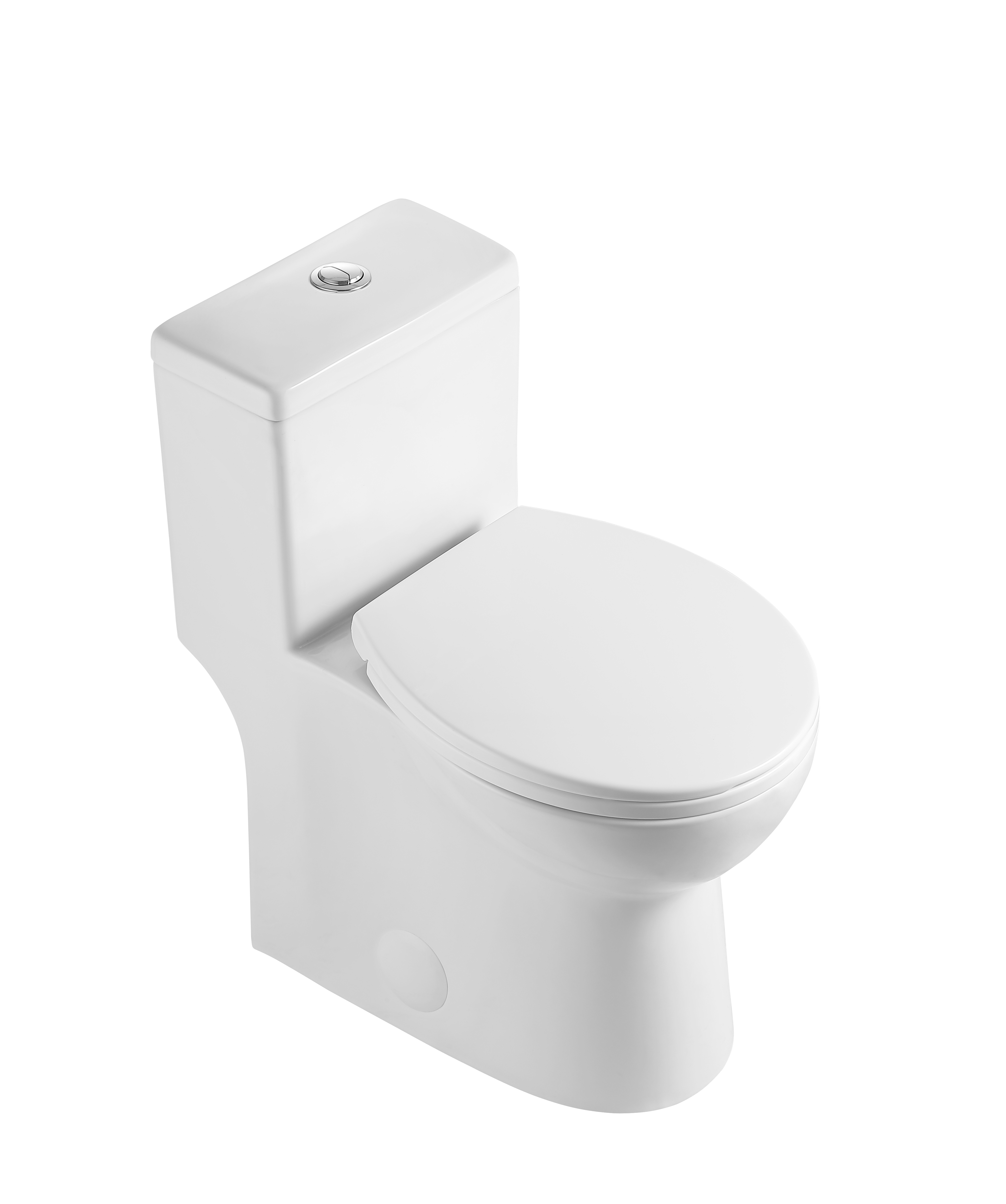 This glossy polished white toilet is a one-piece toilet, linking effortlessly the bowl and the tank for an easy maintenance, cleaning and installation. It uses the new Siphonic Flushing Technology that cleans two times more efficiently compared to traditional toilets and it has a built-in High Power Flush yet low water consumption (saves water).